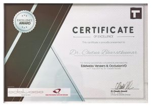 2017 (1st July) – Certificate of Excellence – Successfully completed and attended Edelweiss Veneers & OcclusionVD by Dr. Claudio Novelli